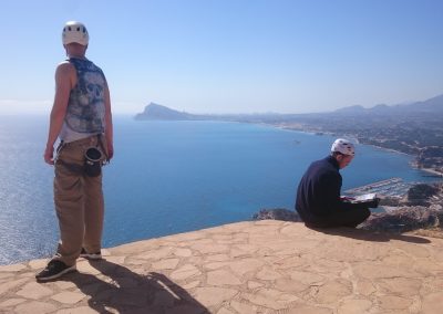 Spain, February 2022 Taking in the view at Toix At the top of Toix Ridge Raz Making a move Dave leading in the Costa Blanca sun Spain, February 2023 Helen on a 6a+ At the top of Guadalest Dave & Jim way up on their 2nd pitch Above the Refuge at Guadalest Toix Magical Mystery Tour By Helen Kevin & Helen Enjoying a beer at the Refuge Sunset from the apartment